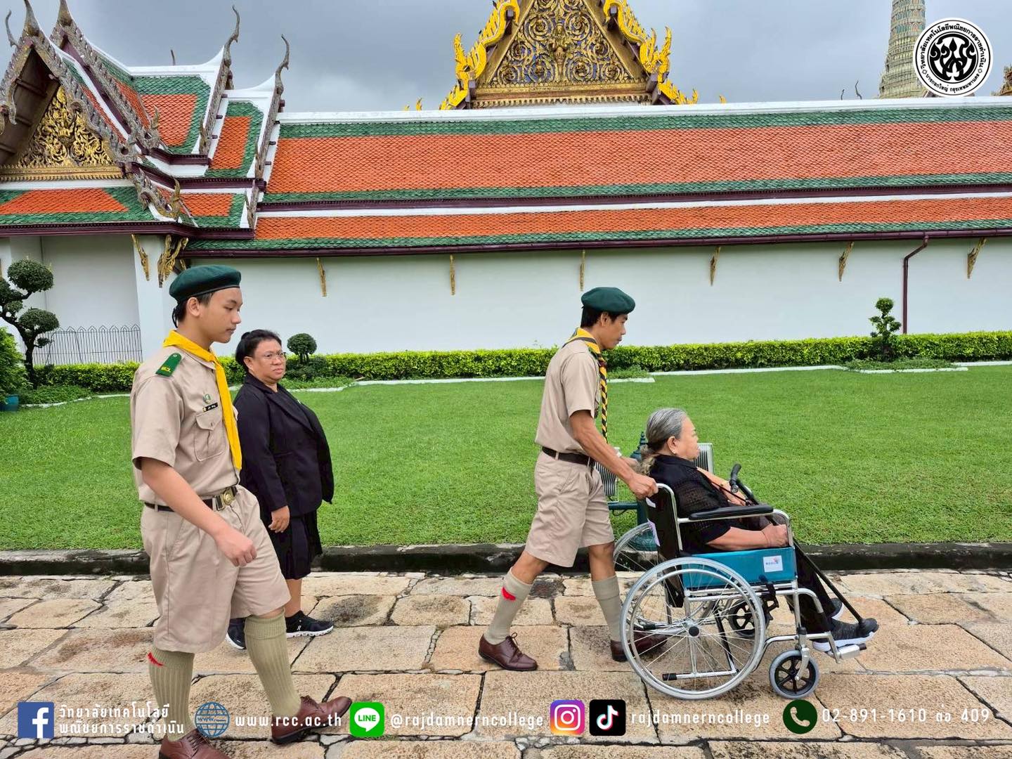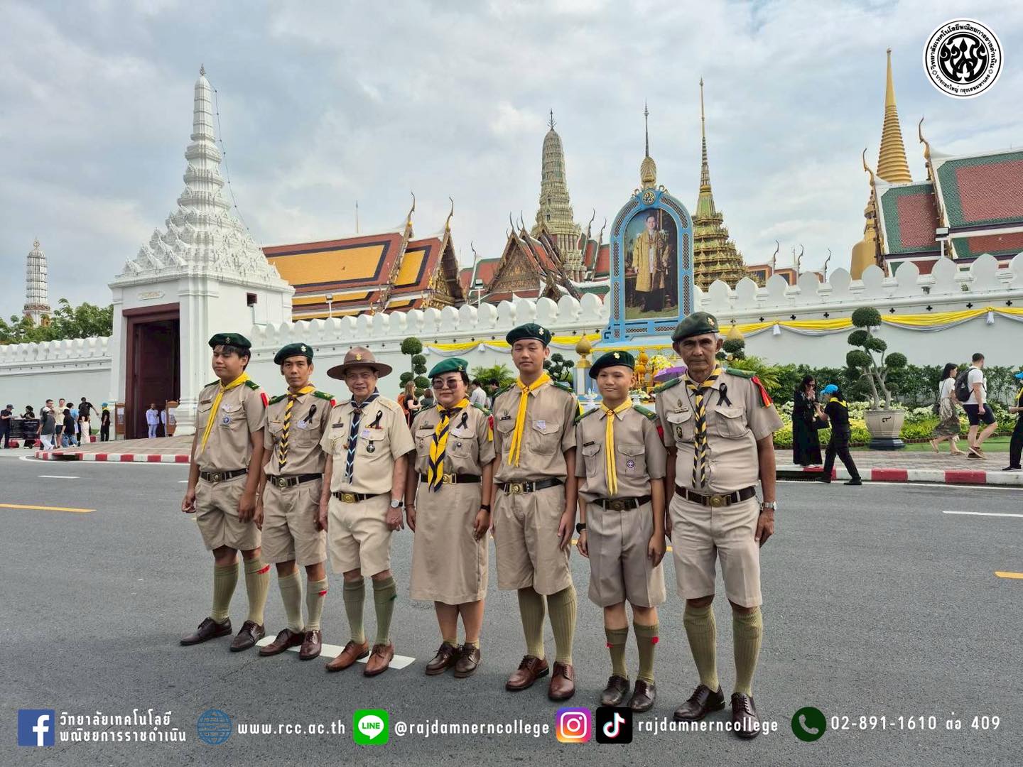 อาจารย์ไพฑูรย์ พันธุ์ชาตรี ผู้อำนวยการวิทยาลัยเทคโนโลยีพณิชยการราชดำเนิน นำ กองลูกเสือวิสามัญวิทยาลัยเทคโนโลยีพณิชยการราชดำเนิน ปฏิบัติหน้าที่อำนวยความสะดวกแก่ประชาชน ในการเข้าถวายสักการะเบื้องหน้าพระฉายาลักษณ์ สมเด็จพระนางเจ้าสิริกิติ์ พระบรมราชินีนาถ พระบรมราชชนนีพันปีหลวง เมื่อวันที่ 1 พฤศจิกายน 2568 ณ ศาลาสหทัยสมาคม ในพระบรมมหาราชวัง น้อมสำนึกในพระมหากรุณาธิคุณเป็นล้นพ้นอันหาที่สุดมิได้ ด้วยเกล้าด้วยกระหม่อม ขอเดชะ ข้าพระพุทธเจ้า คณะผู้บริหาร คณาจารย์ บุคลากร นักเรียน นักศึกษา วิทยาลัยเทคโนโลยีพณิชยการราชดำเนิน Mr. Phaithoon Phanchatree, Director of Panitchayakan Rajdamnern Technological College, led the college’s Rover Scout Troop in providing assistance and facilitating services for the public during the ceremony of paying respects before the portrait of Her Majesty Queen Sirikit The Queen Mother on November 1, 2025, at Saha Thai Samakhom Pavilion, The Grand Palace. With our deepest gratitude for Her Majesty’s boundless and immeasurable benevolence. With utmost respect and loyalty, we, the executives, faculty members, staff, and students of Panitchayakan Rajdamnern Technological College, humbly offer our sincere homage.