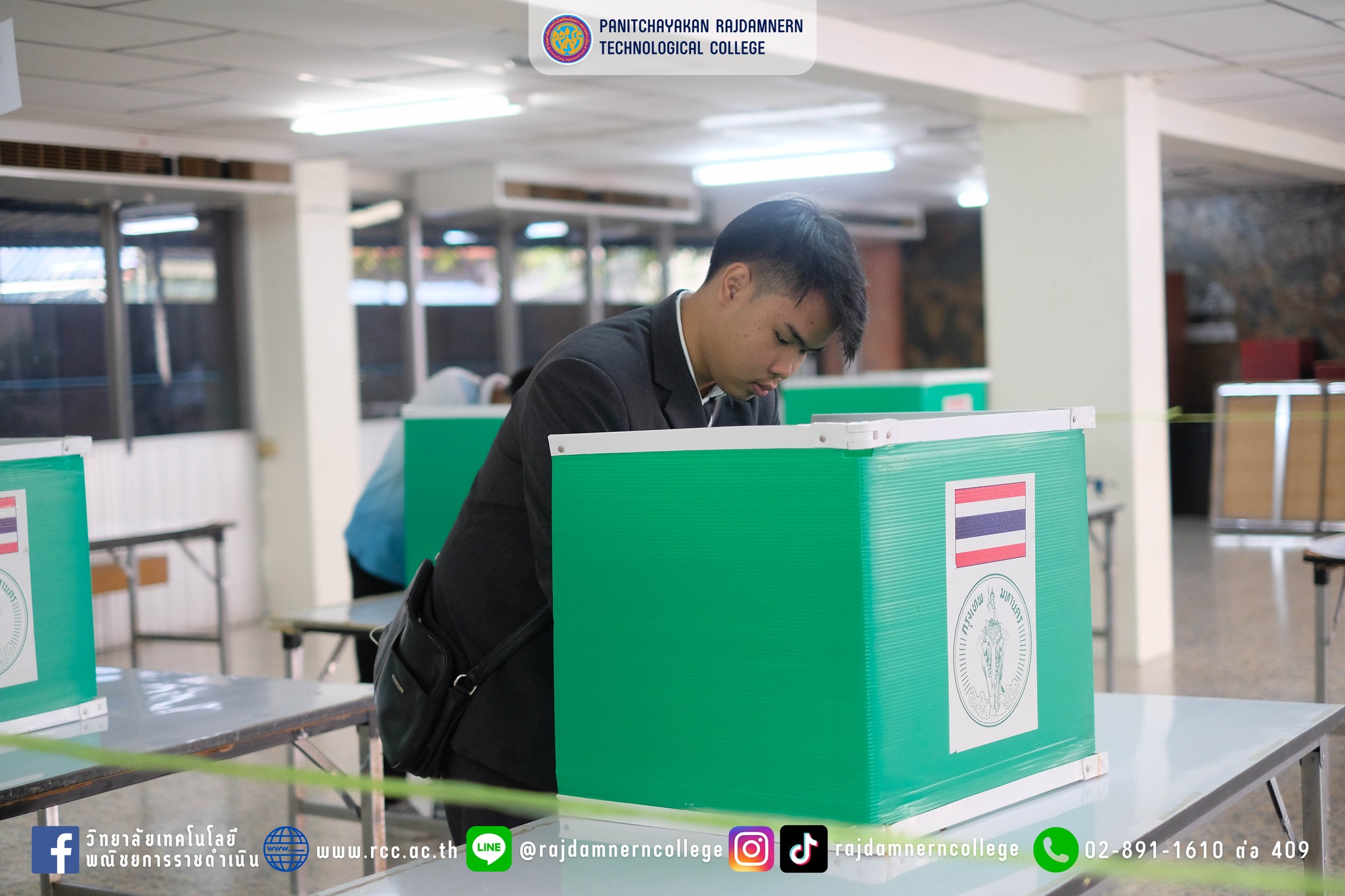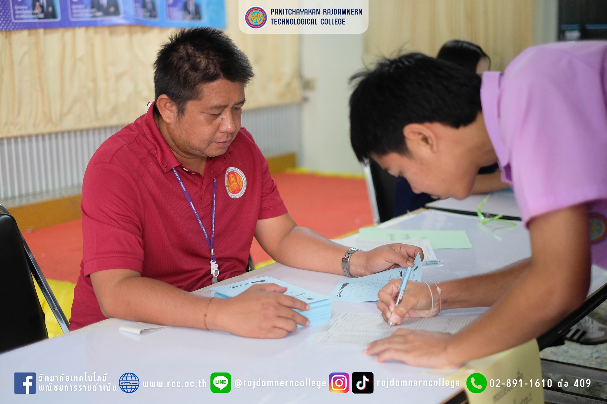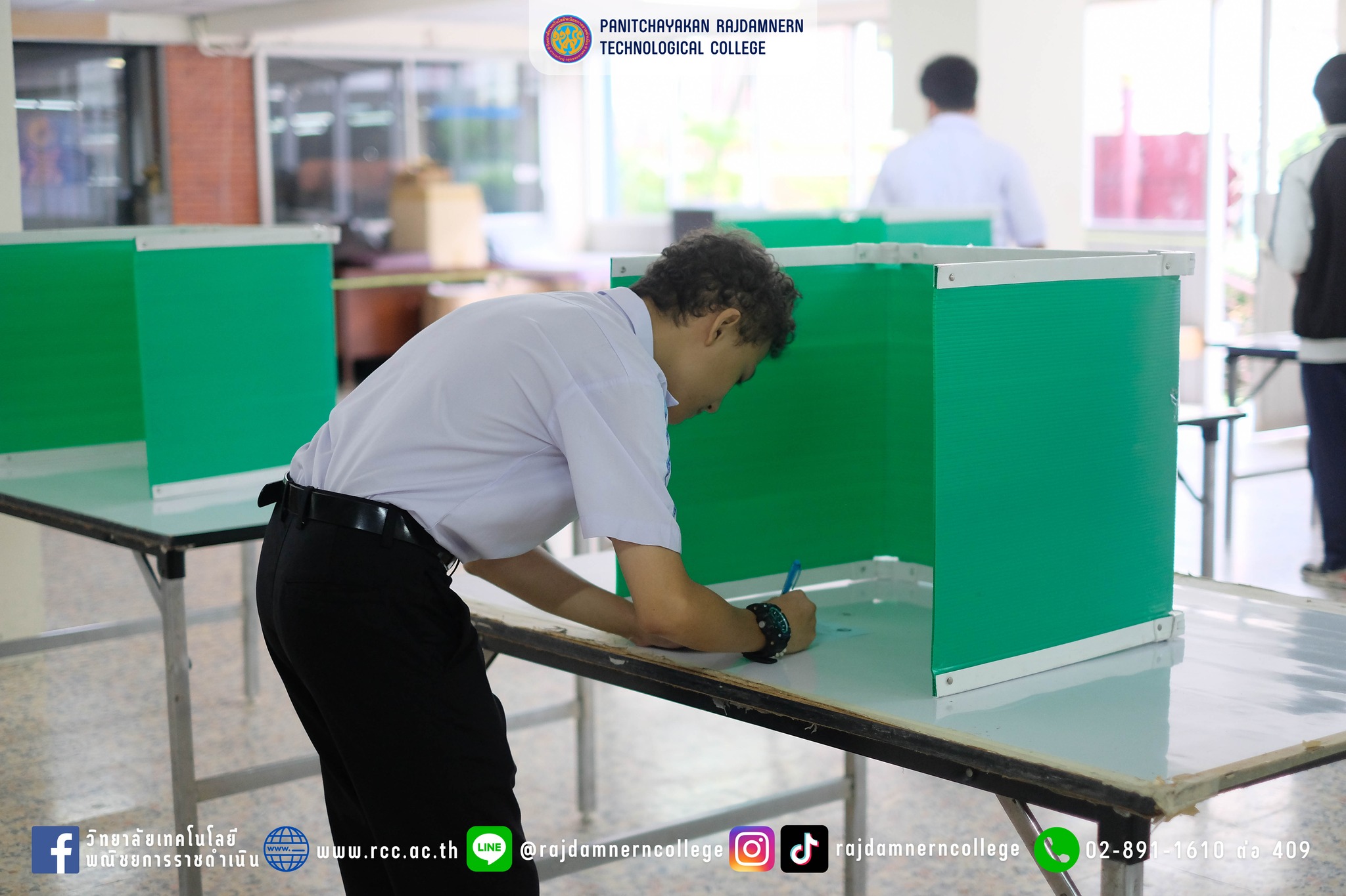 นักเรียน นักศึกษา เข้าคูหาใช้สิทธิเลือกตั้งนายก องค์การนักวิชาชีพในอนาคตแห่งประเทศไทย วิทยาลัยเทคโนโลยีพณิชยการราชดำเนิน ประจำปีการศึกษา 2569 ณ ห้องเอนกประสงค์ วันพฤหัสบดีที่ 11 กันยายน 2568 เวลา 08.30 - 15.30 น. Students are voting for the President of the Council of Professional Experts at Rajadamnern Commercial Technology College for the 2026 academic year. In the Multipurpose Room September 11, 2025 From 8:30 AM to 3:30 PM