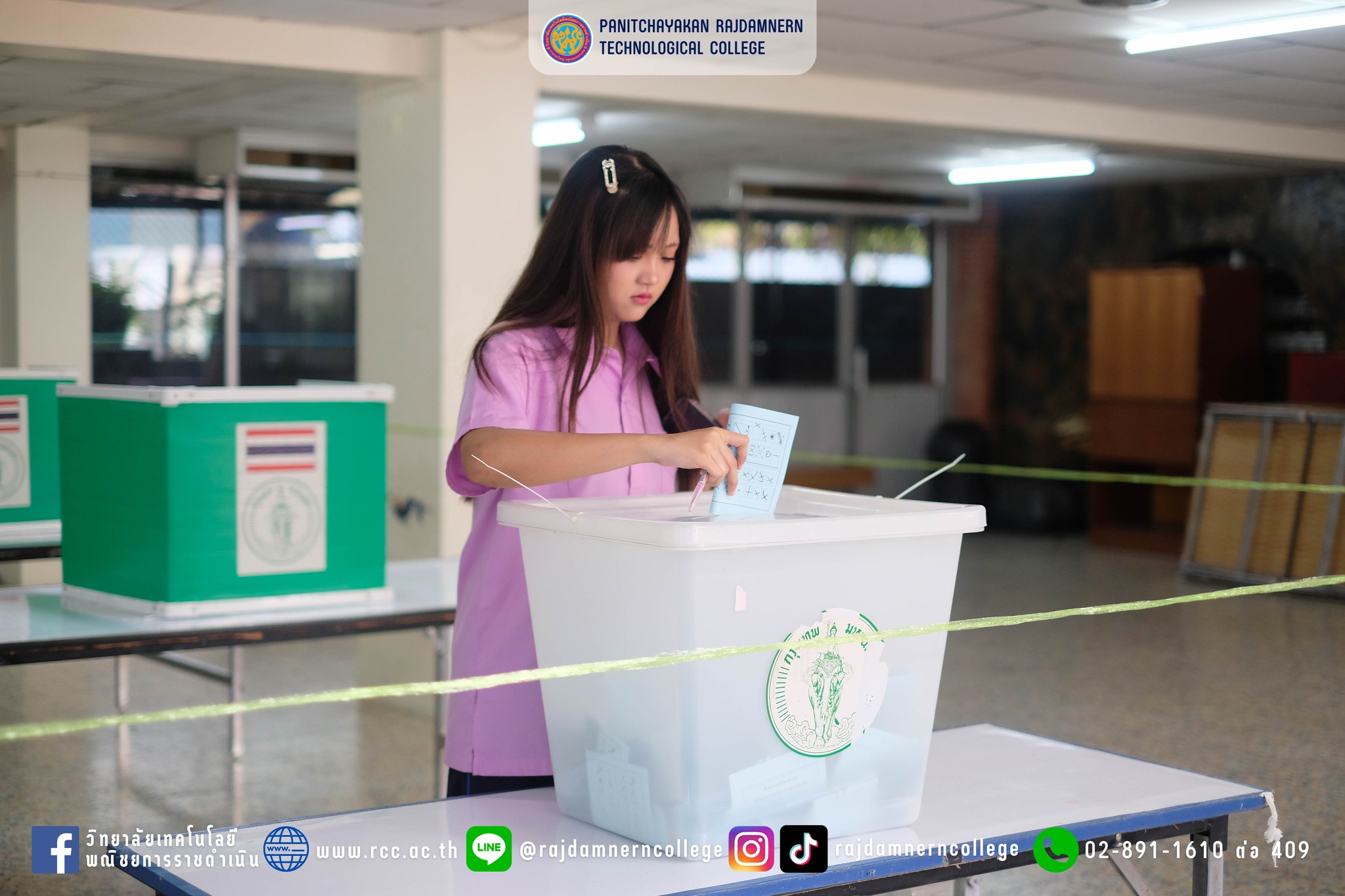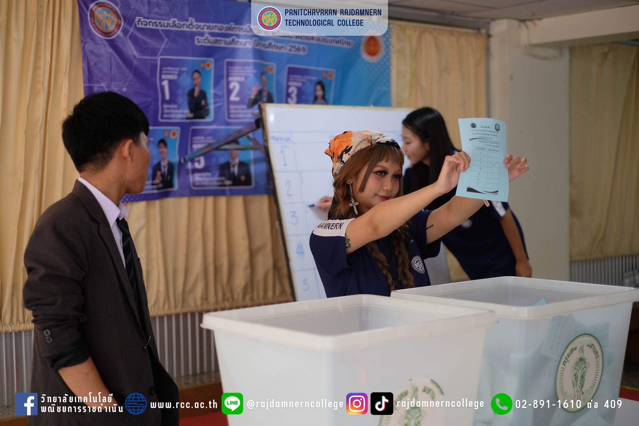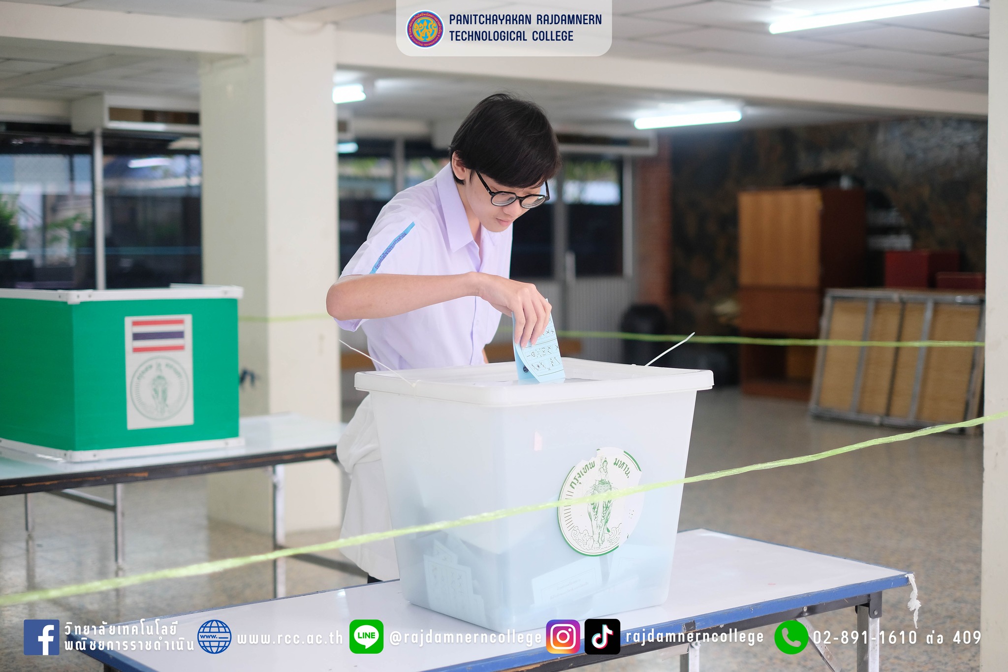 นักเรียน นักศึกษา เข้าคูหาใช้สิทธิเลือกตั้งนายก องค์การนักวิชาชีพในอนาคตแห่งประเทศไทย วิทยาลัยเทคโนโลยีพณิชยการราชดำเนิน ประจำปีการศึกษา 2569 ณ ห้องเอนกประสงค์ วันพฤหัสบดีที่ 11 กันยายน 2568 เวลา 08.30 - 15.30 น. Students are voting for the President of the Council of Professional Experts at Rajadamnern Commercial Technology College for the 2026 academic year. In the Multipurpose Room September 11, 2025 From 8:30 AM to 3:30 PM